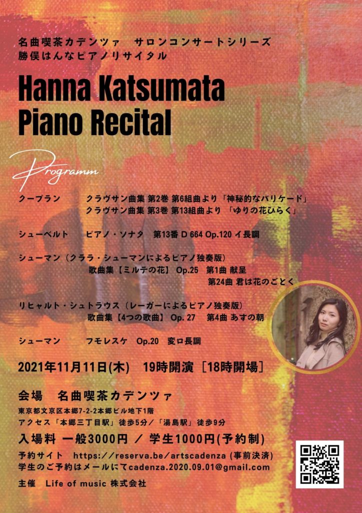 2021年11月11日(木) 名曲喫茶カデンツァサロンコンサートシリーズ 出演情報