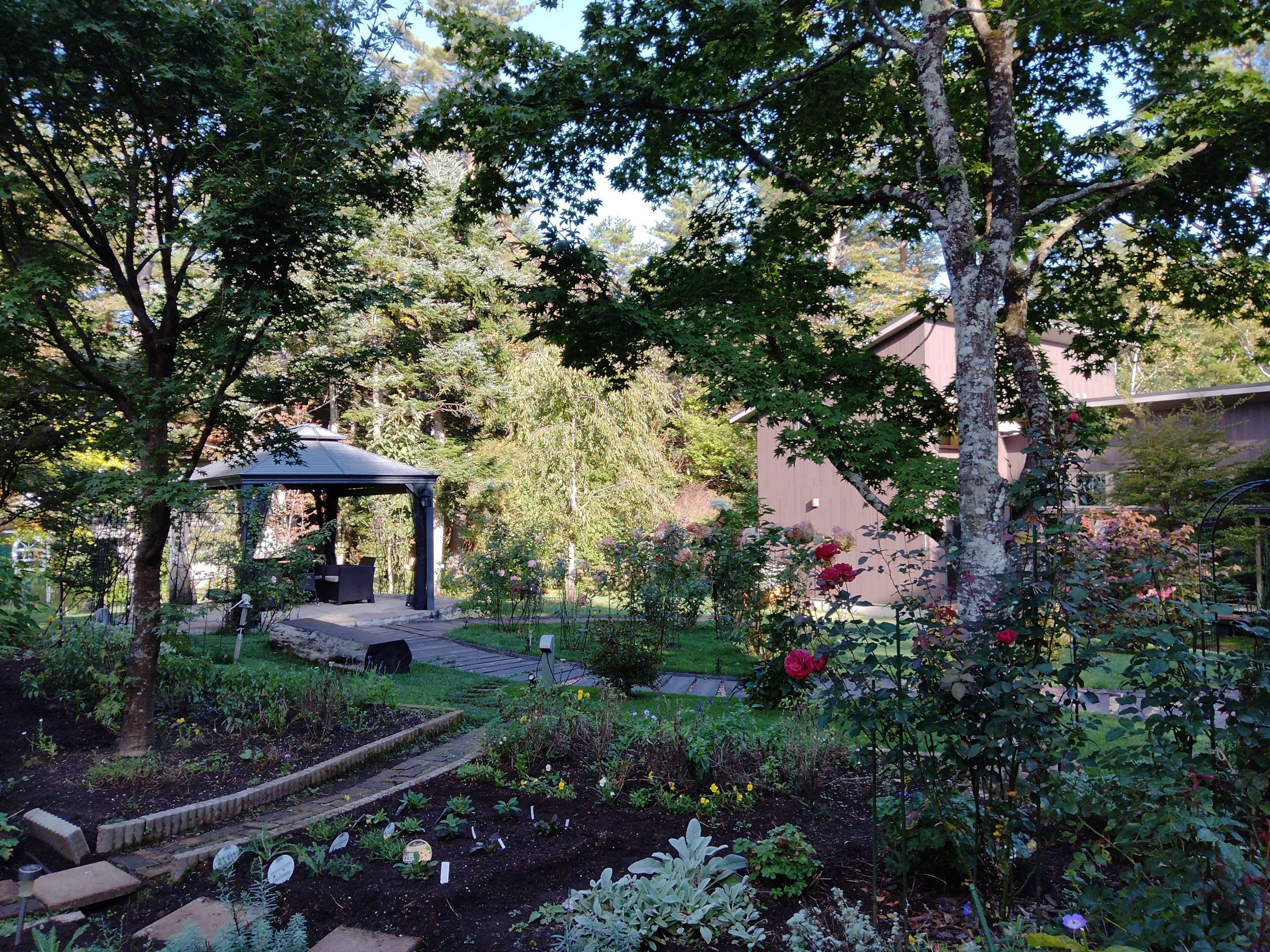 【会場となった永井邸の庭園】演奏会当日は、開演前には庭園の東屋で、お客様のおもてなしがありました。
